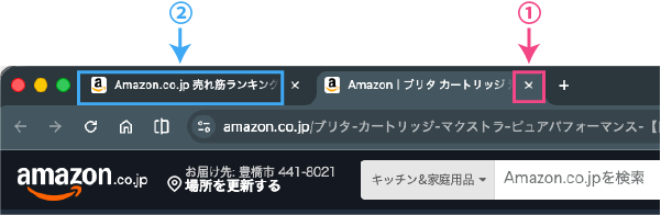 - 入力が終わった商品ページのタブ①を閉じる。