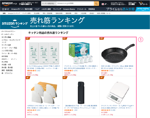 ① ランキングのページから商品ページを開く