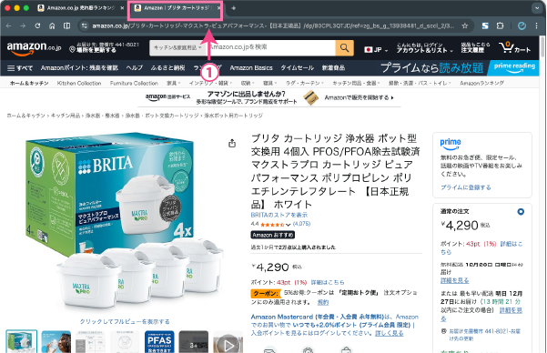 - 開いた商品のタブをクリックします。